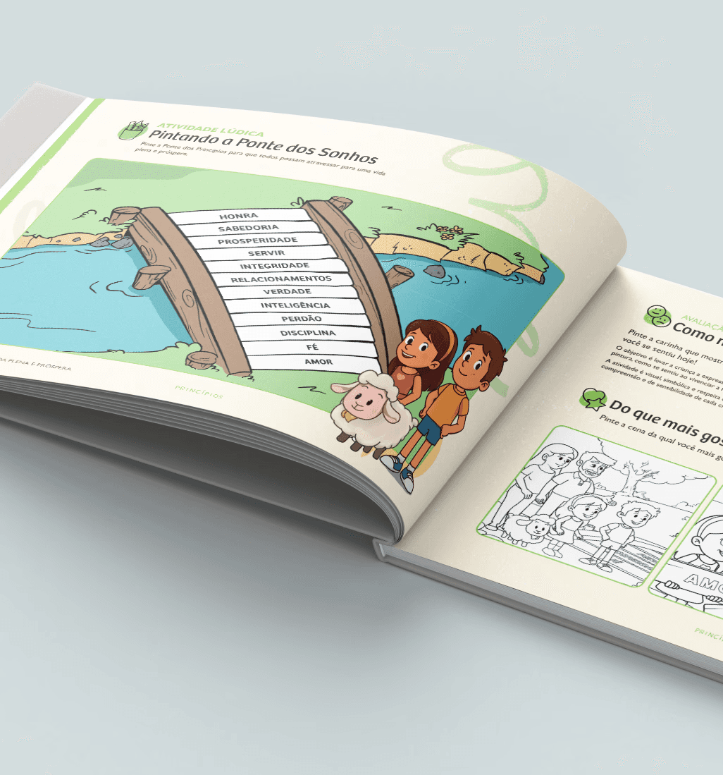 Nosso material não fala sobre valores, ele faz viver os valores. É um convite à reflexão. Uma forma de educar com afeto, clareza e propósito.